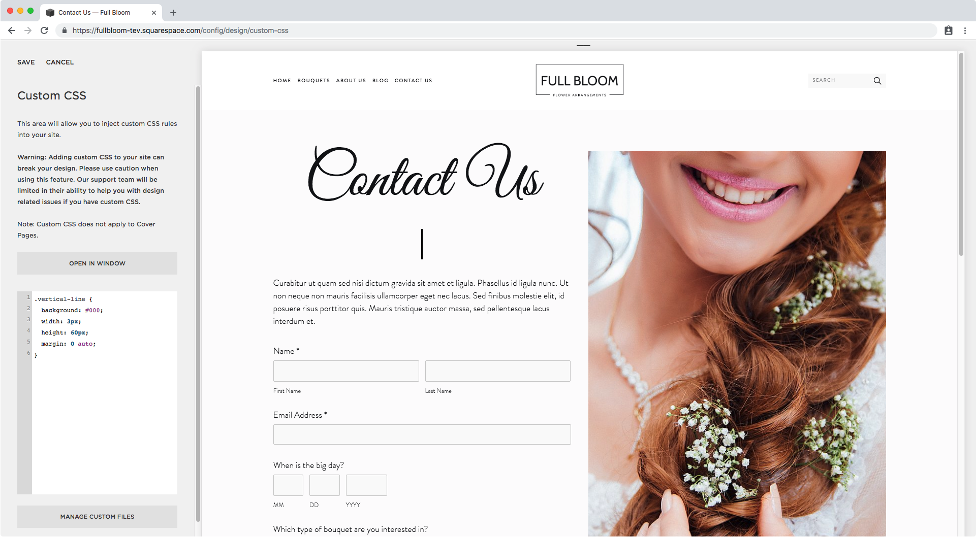 You’re good to go my friend, you can now add vertical lines to your Squarespace site as much as you like by simply duplicating the HTML portion anywhere you want to display one!